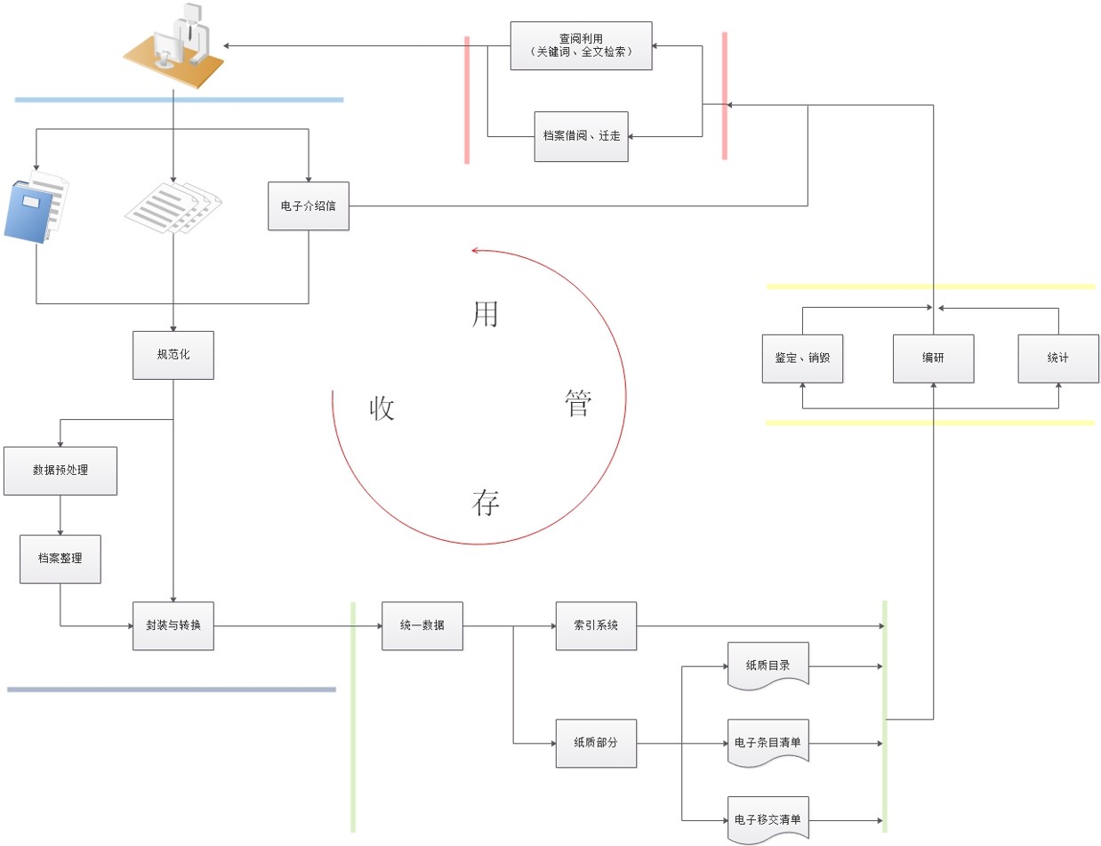 - 館室共享:區(qū)域範圍內(nèi),聯通(tōng)綜合檔案館、專業檔案館、專業檔案室